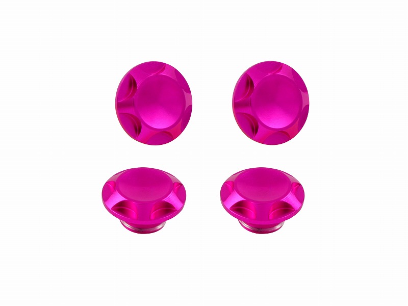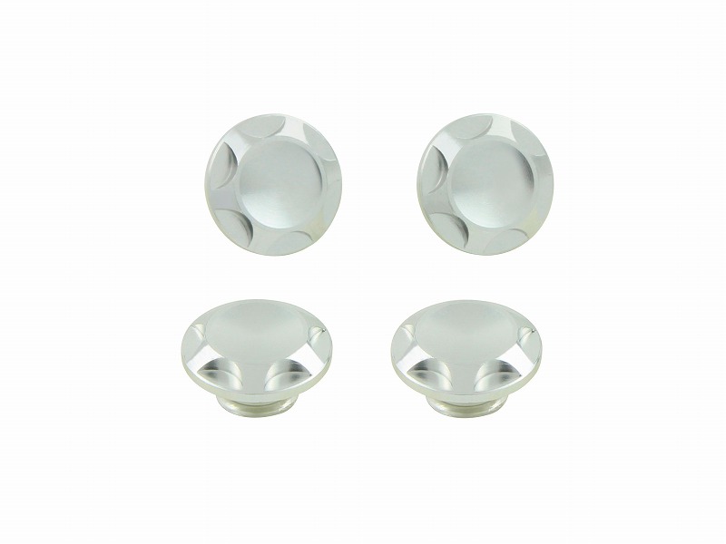 市販のM6キャップボルトの頭に差し込むだけの簡単取り付け。ハンドル周りなどのドレスアップ等にいかがでしょうか?アルミ削り出し、アルマイト/メッキ仕上げ。