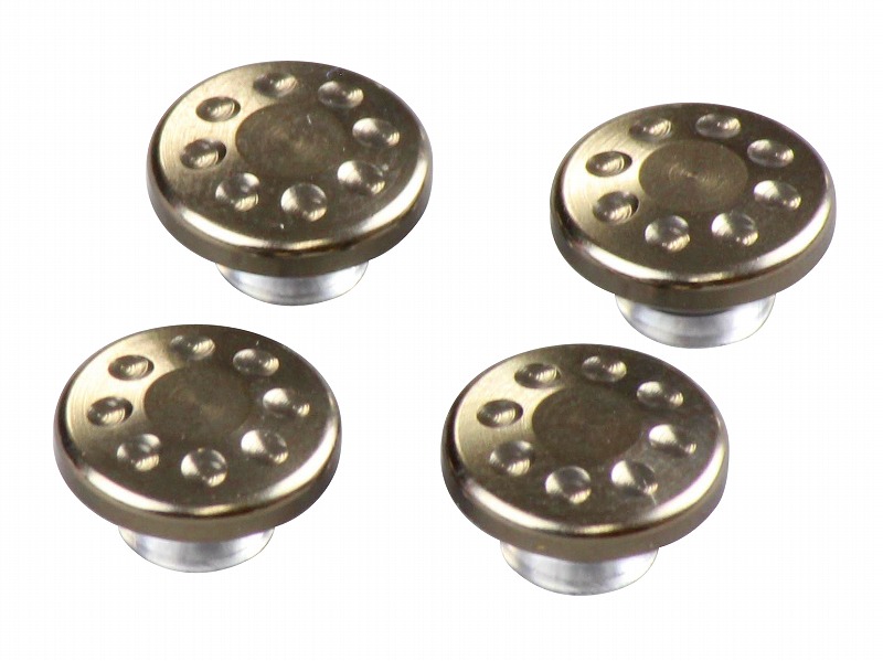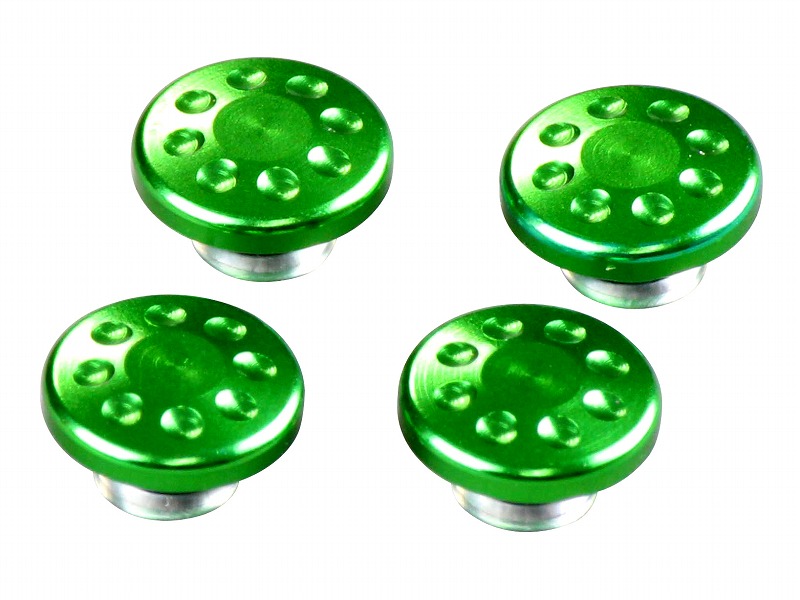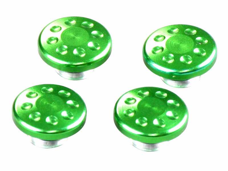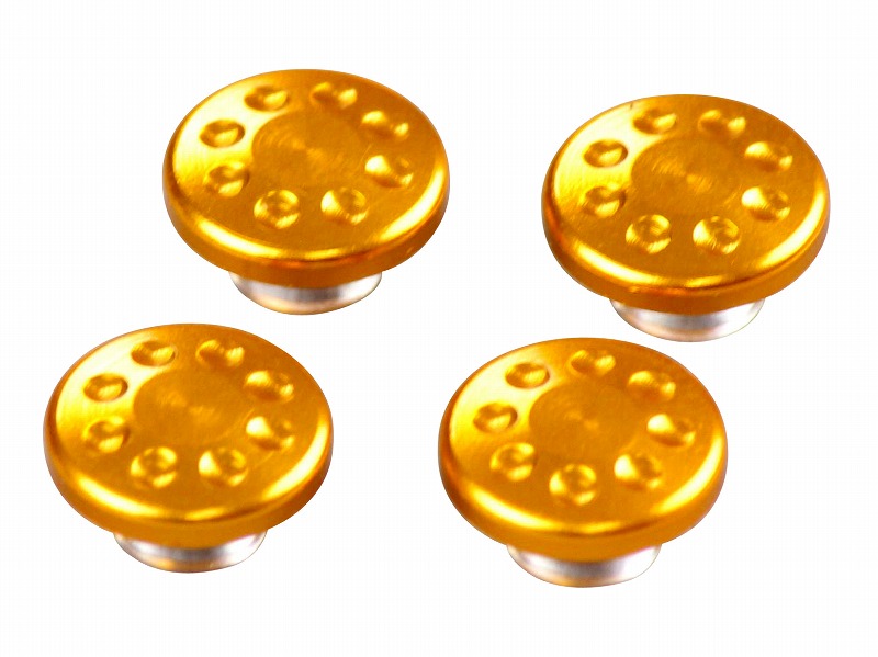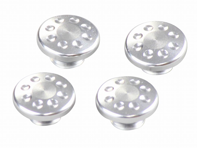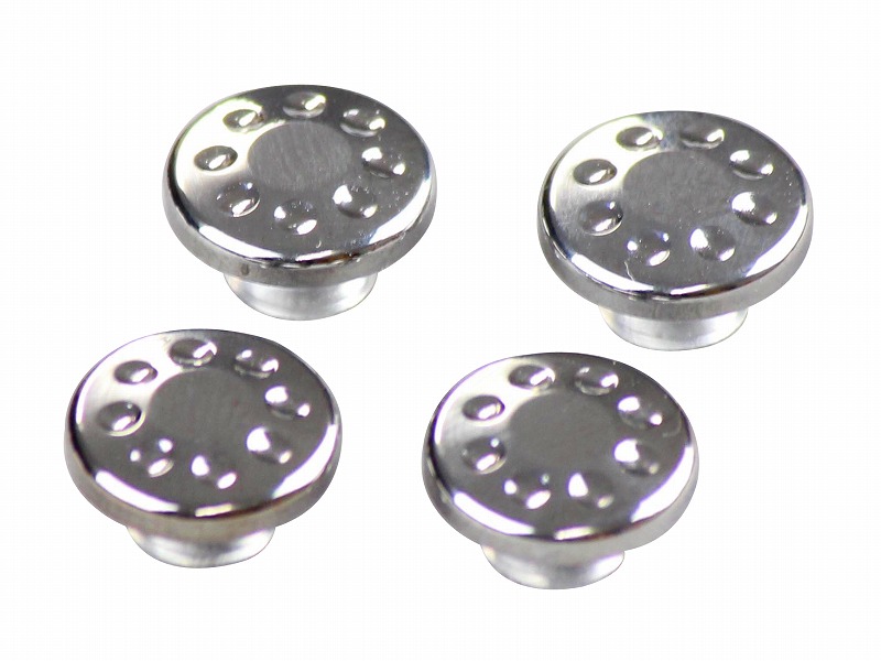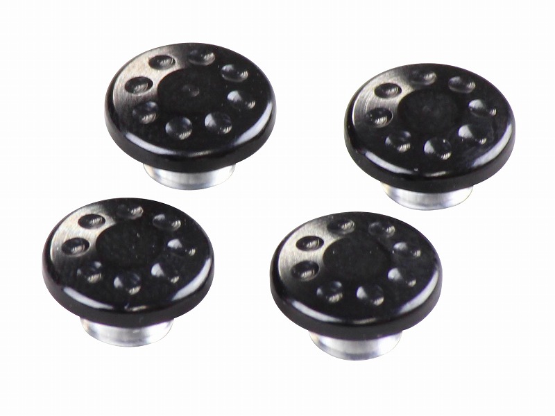 市販のM6キャップボルトの頭に差し込むだけの簡単取り付け。ハンドル周りなどのドレスアップ等にいかがでしょうか?アルミ削り出し、アルマイト/メッキ仕上げ。